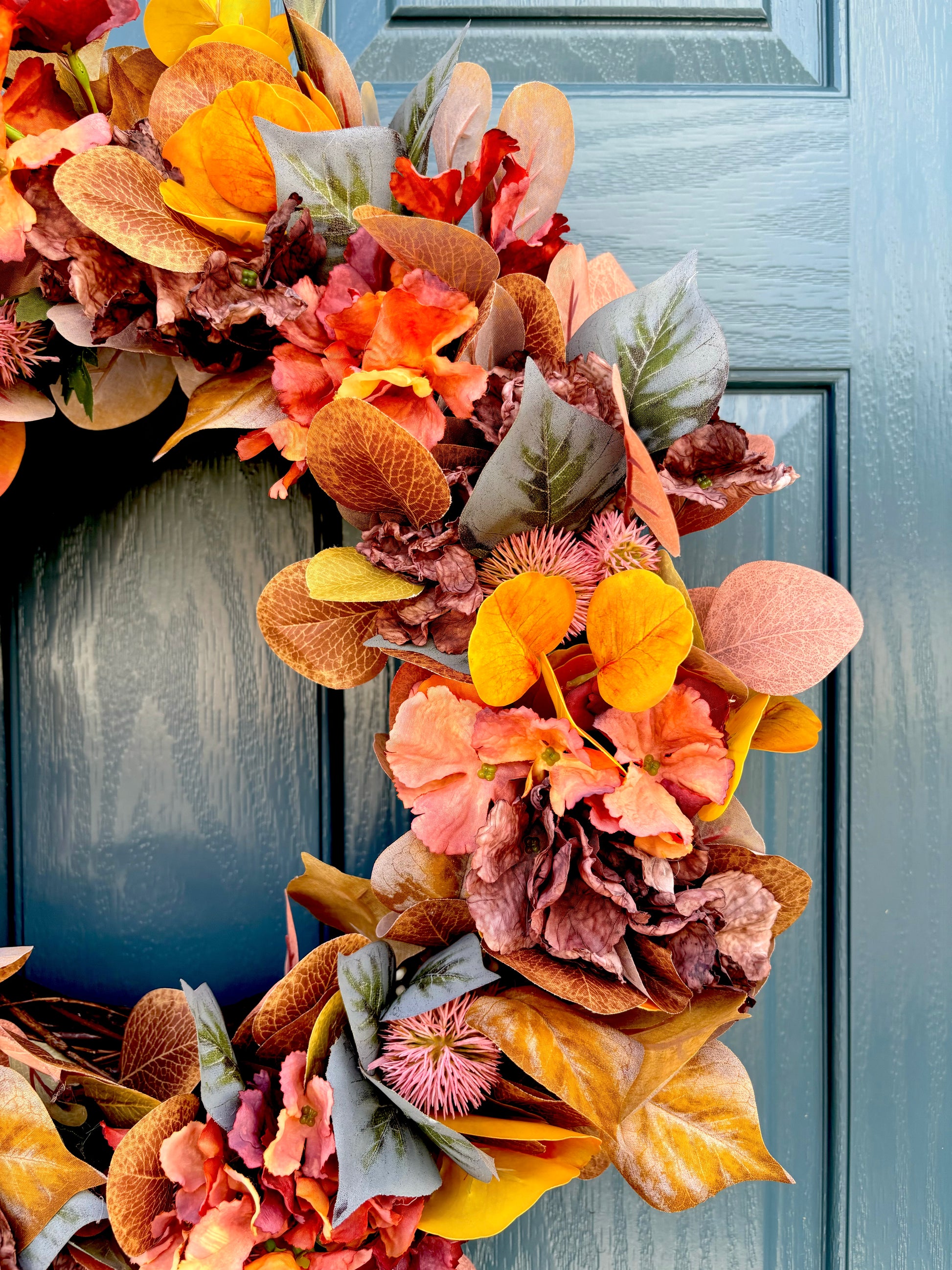 Autumn Wreath | Faux Floral Door Decor - “Amber Fall”