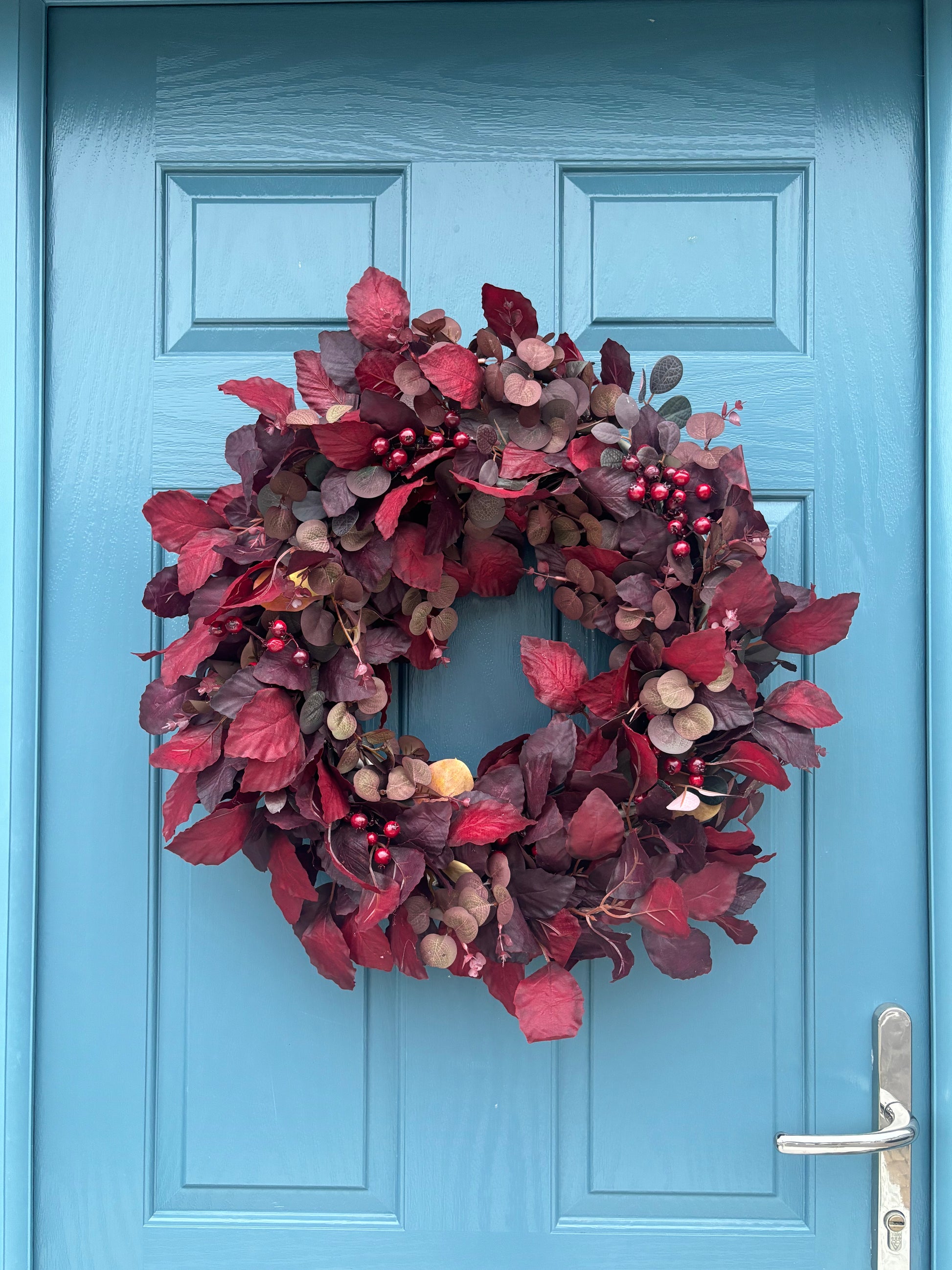 Measuring approx. 55cm, this faux foliage wreath is full of high-quality artificial foliage arranged on a wicker wreath base. Whether you’re decorating for autumn, or simply embracing seasonal front door decor, this autumm door wreath makes a timeless statement.