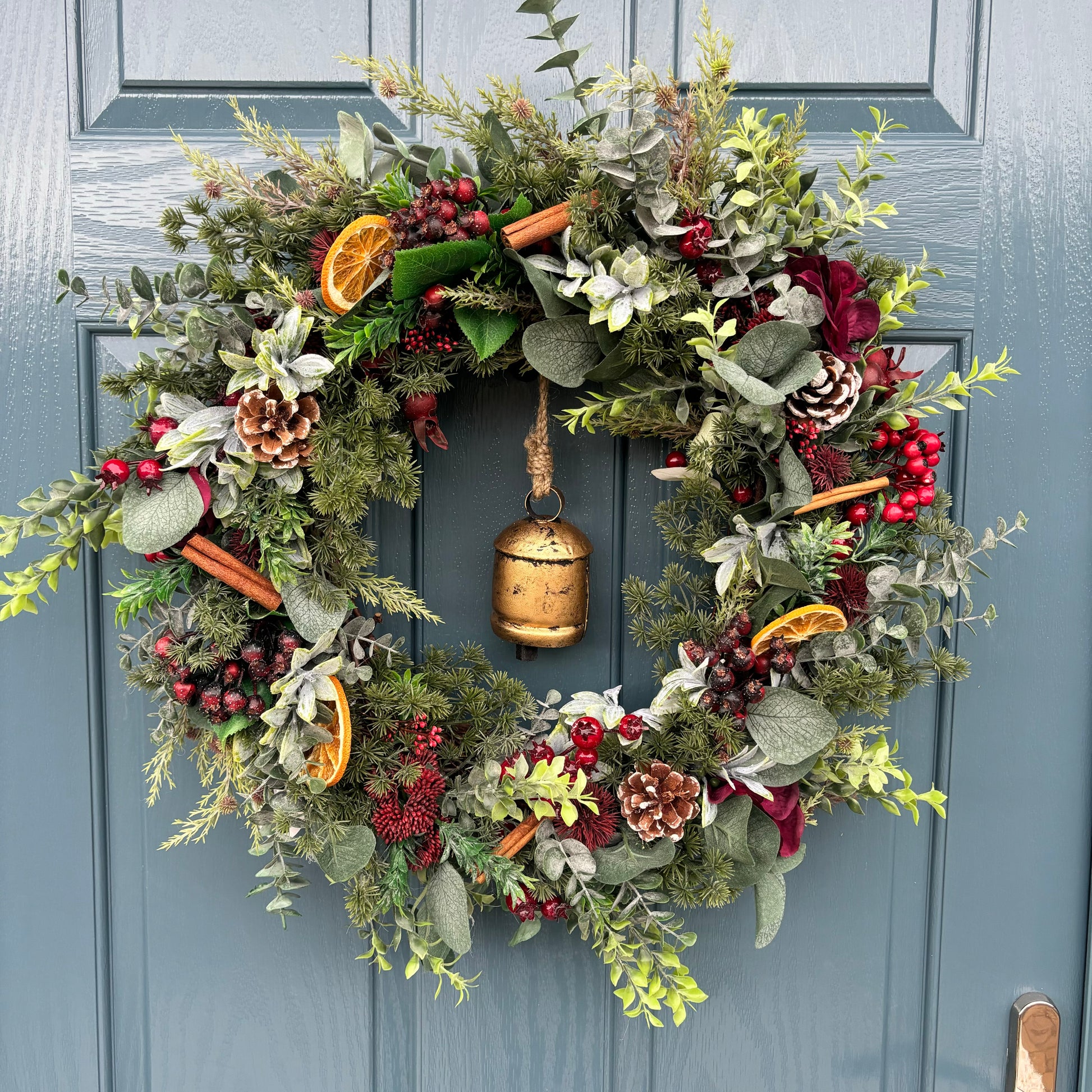 The Vintage Noel is a classic addition to your Christmas decor, combining red berries, dried fruit, and an antique cow bell for a festive, rustic look. At approximately 55cm, it’s the perfect size for your front door or an indoor display, adding warmth and charm to any space.